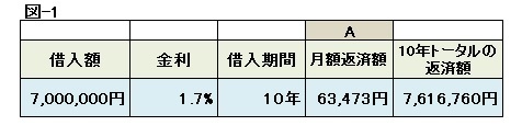 この借入れケースの場合、図-1の通り毎月の返済額は63,473円になります。